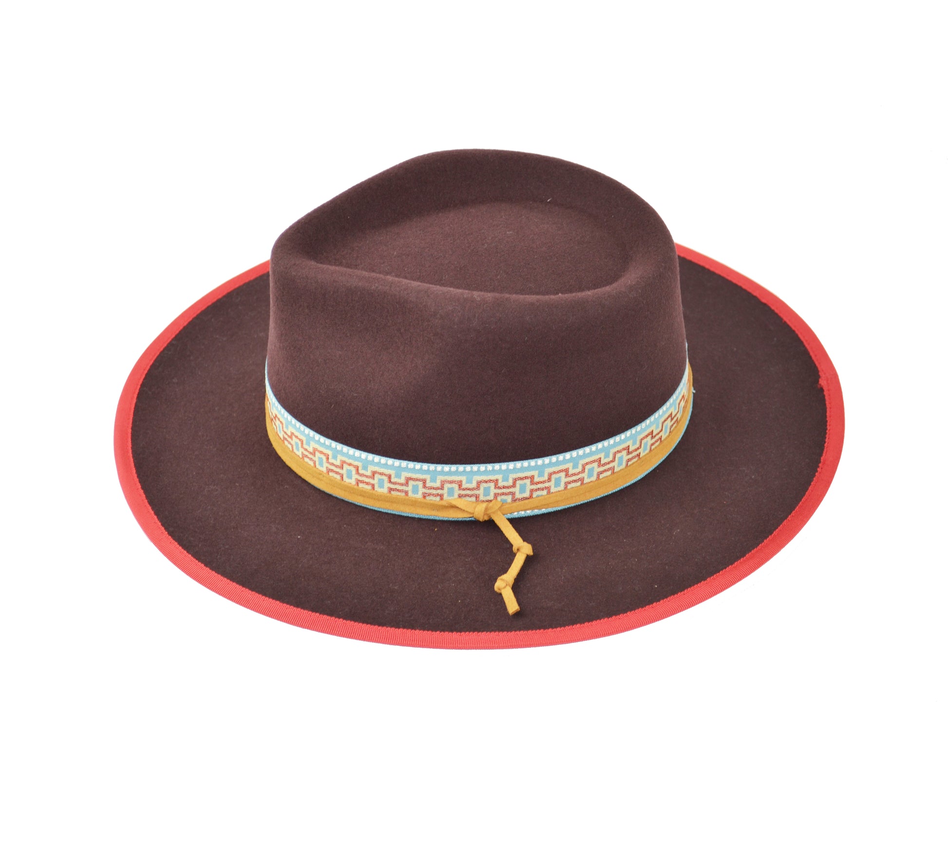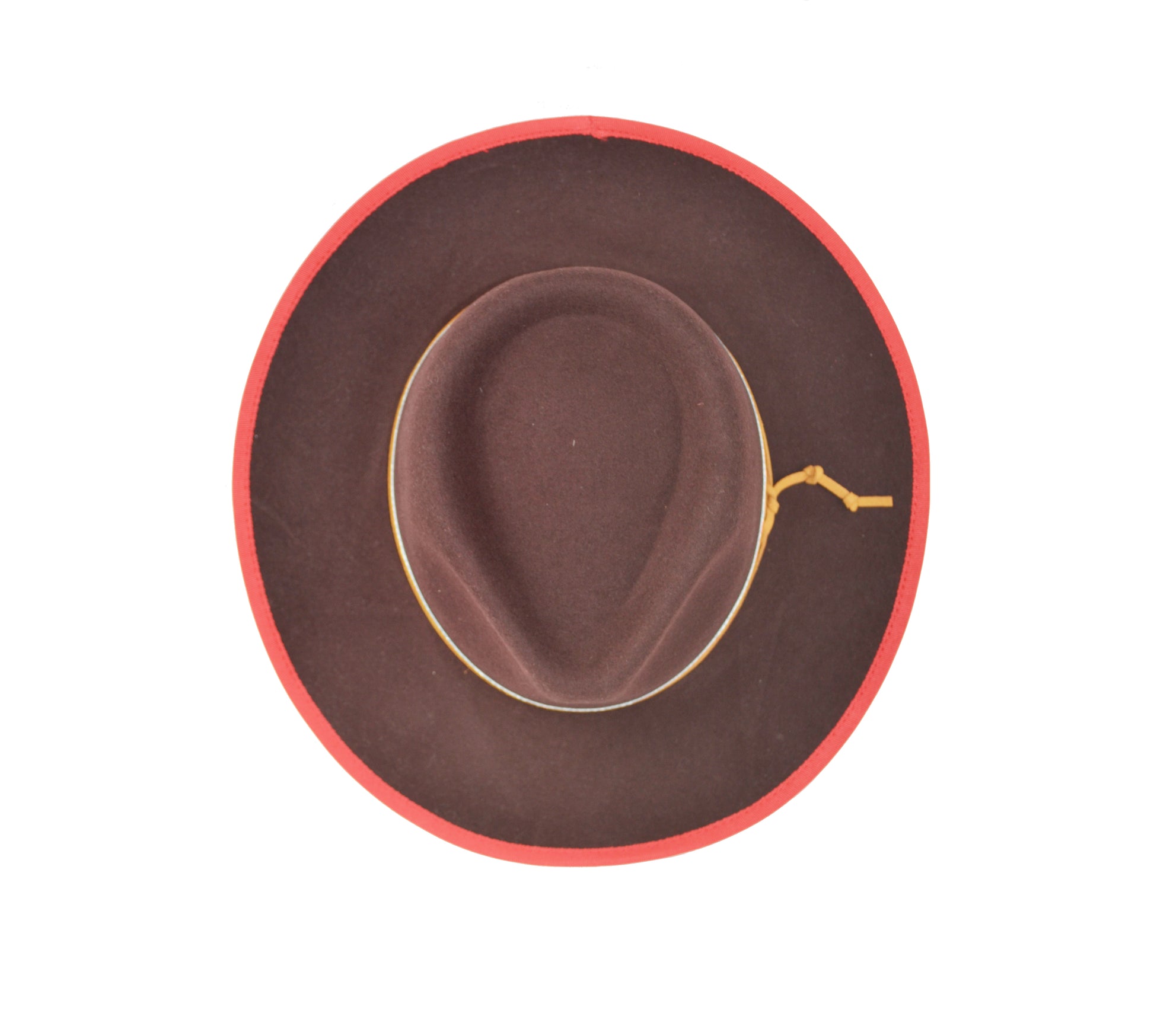 Questo cappello di feltro marrone ha una fascia decorativa. È realizzato al 100% in feltro di lana australiana. Caratterizzato da un'ampia tesa che offre un'ampia copertura dalla luce abbagliante del sole, questo cappello ti mantiene fresco per farti vivere avventure all'aria aperta. Combinando design elegante e funzionalità pratica, questo accessorio migliora istantaneamente il tuo look, trasformando un outfit semplice in un outfit di ispirazione occidentale! Puoi regolare la taglia usando un velcro nascosto nella fodera, in modo che si adatti a qualsiasi dimensione della tua testa! Ottimo per donna e uomo. Tesa larga 7.5 cm