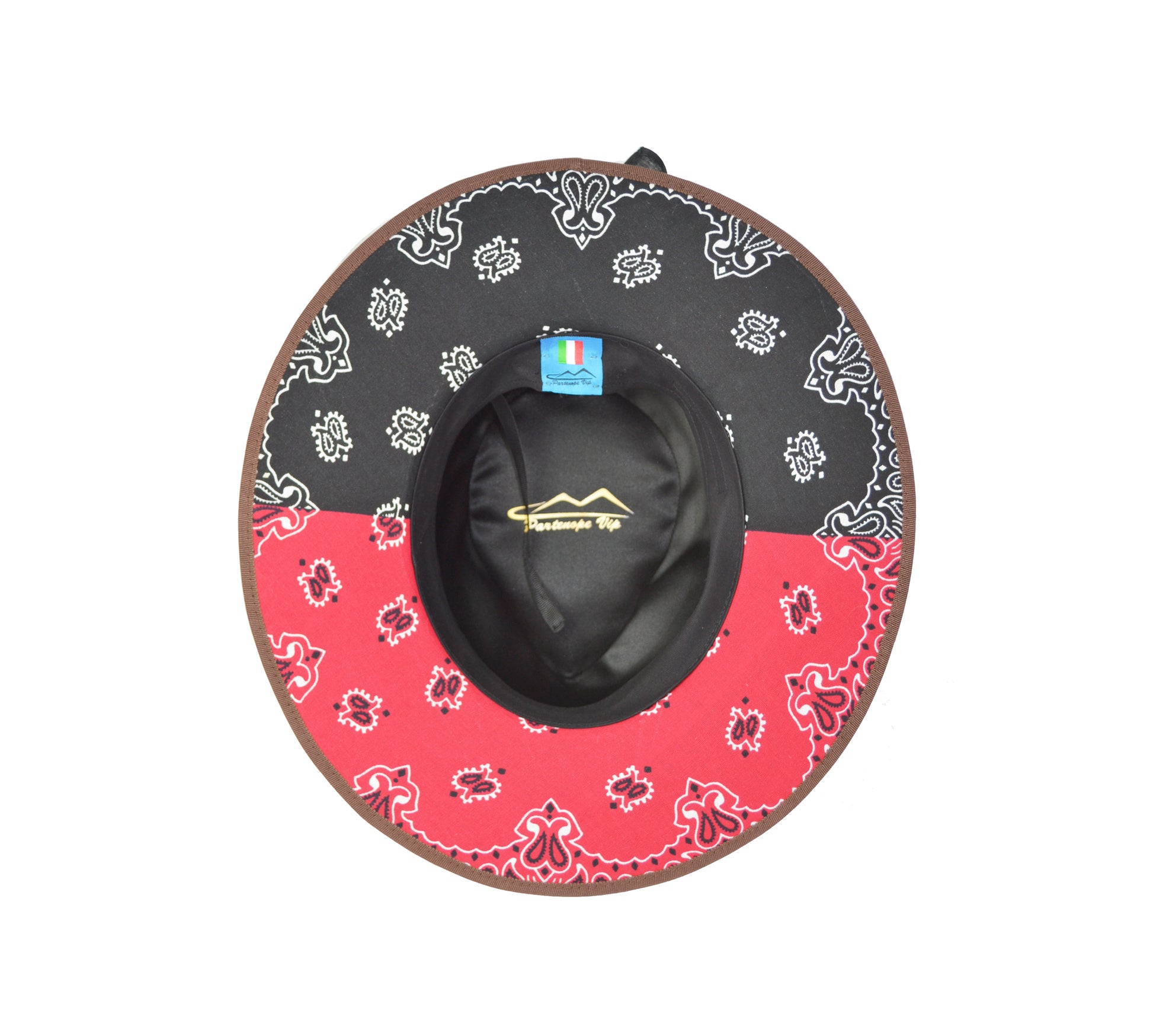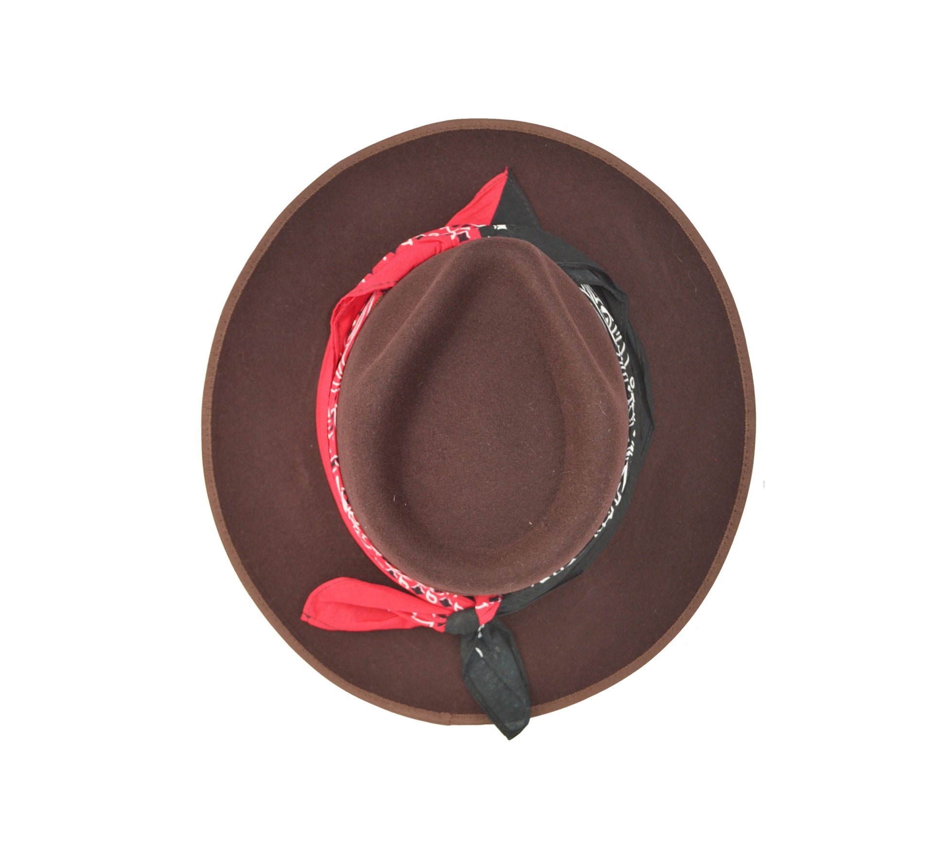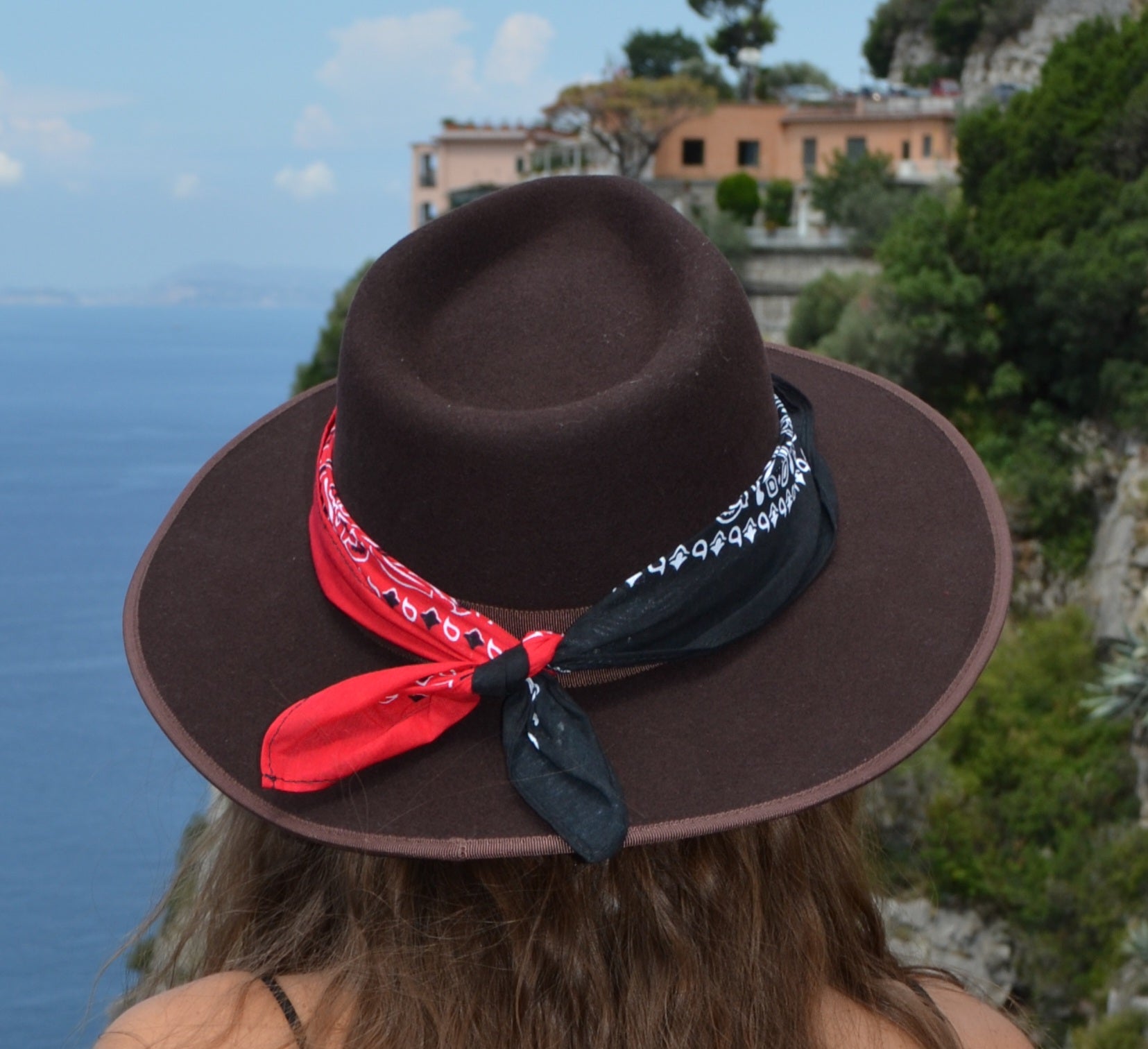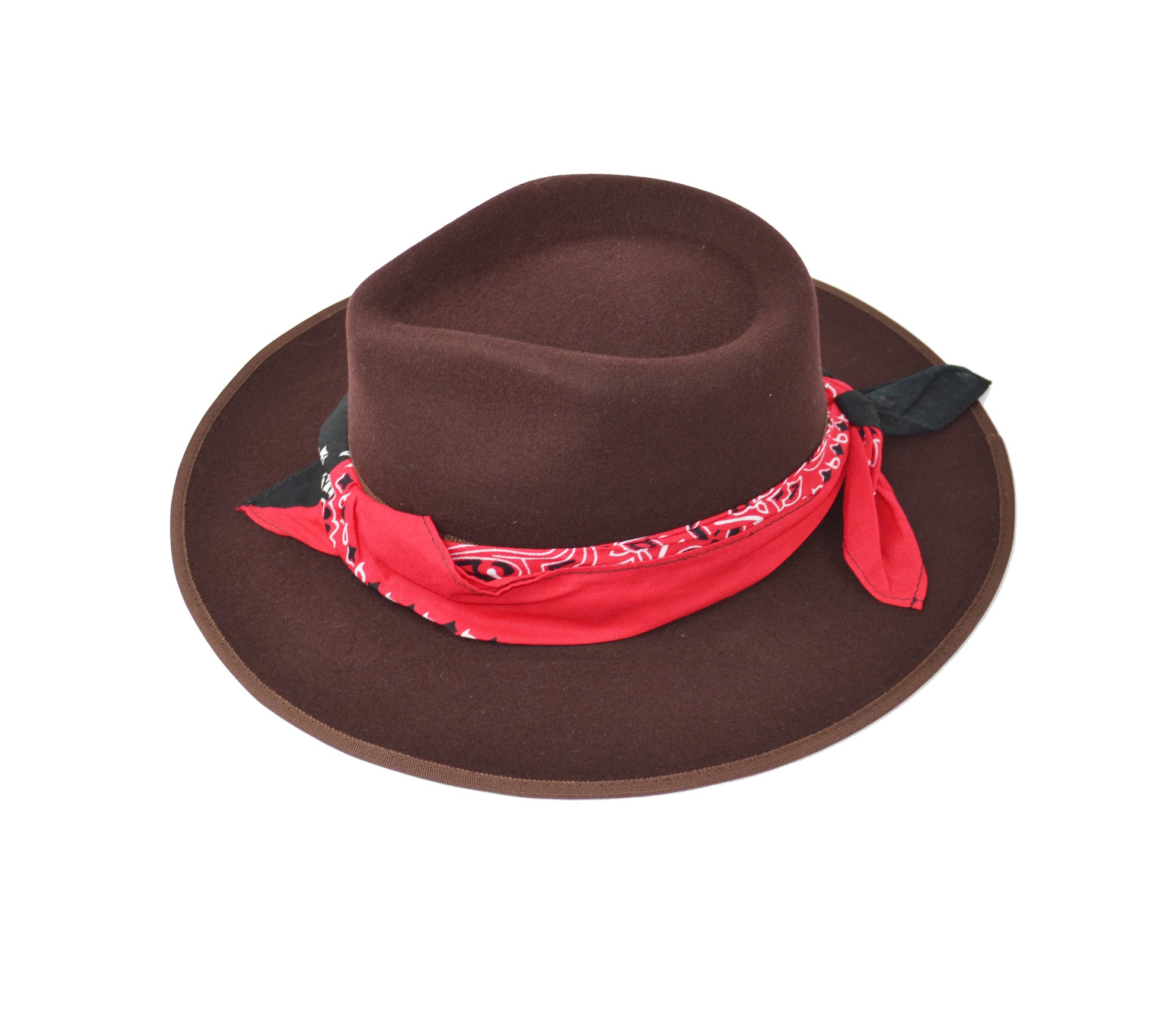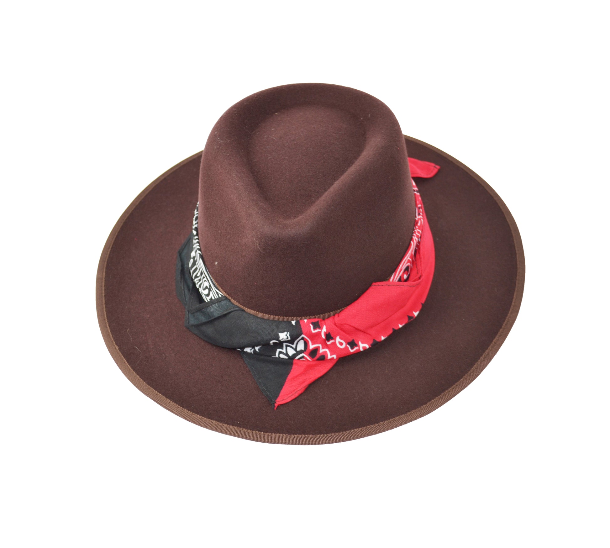 Cappello fedora marrone con fascia in seta nero rosso