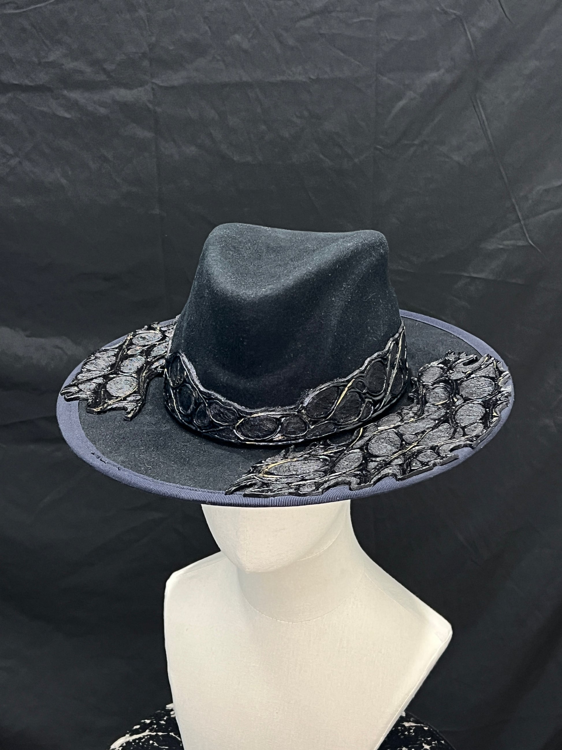 OBSIDIA AURUM – Fedora Artigianale con Pelle Scultorea