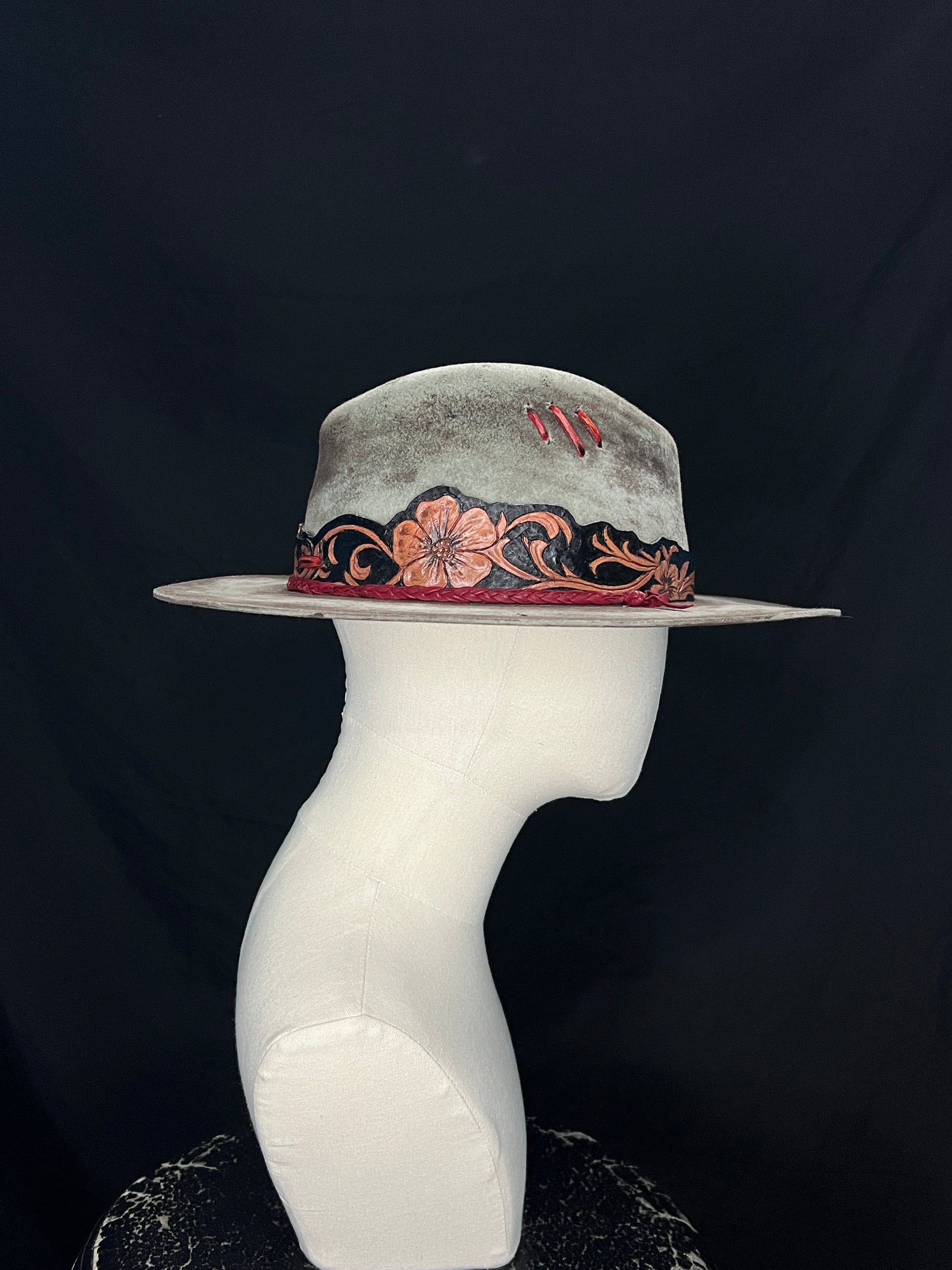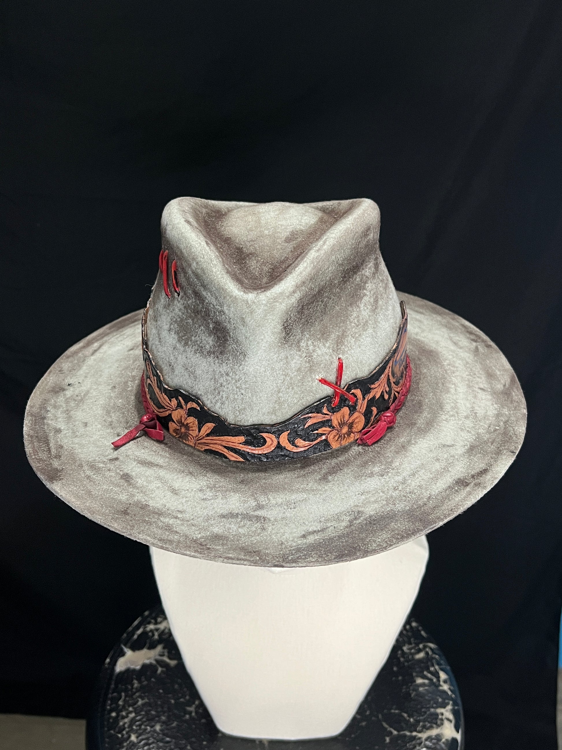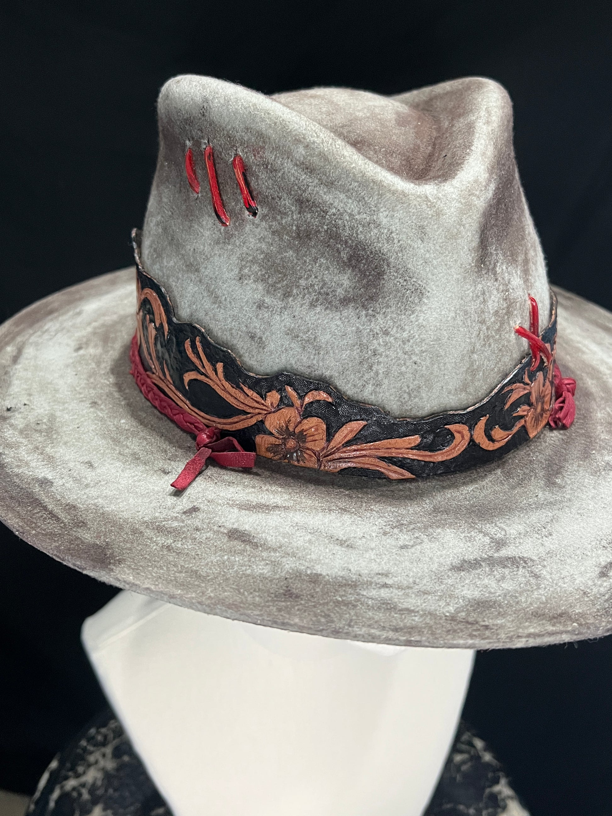 Fedora artigianale in feltro con fascia in pelle lavorata a mano